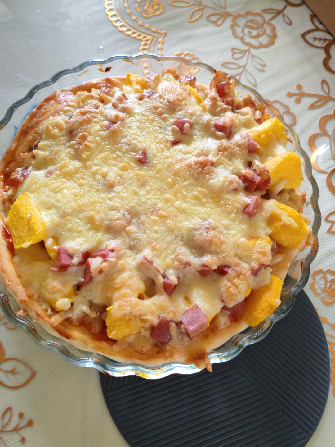 考的披萨超好吃。甜肠+蟠桃+玉米泥+火腿肠