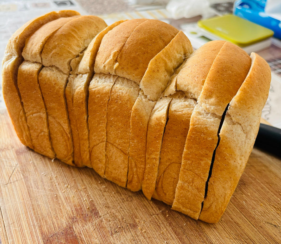 dingdingjia 做过 波兰种全麦吐司 Sp50 : 又是切完之后才想起来的记录温度,450克,两条,160/240 ,26分钟,可以尝试27分钟,很软很好吃#早餐•2024年8月10日# 2024-08-10
