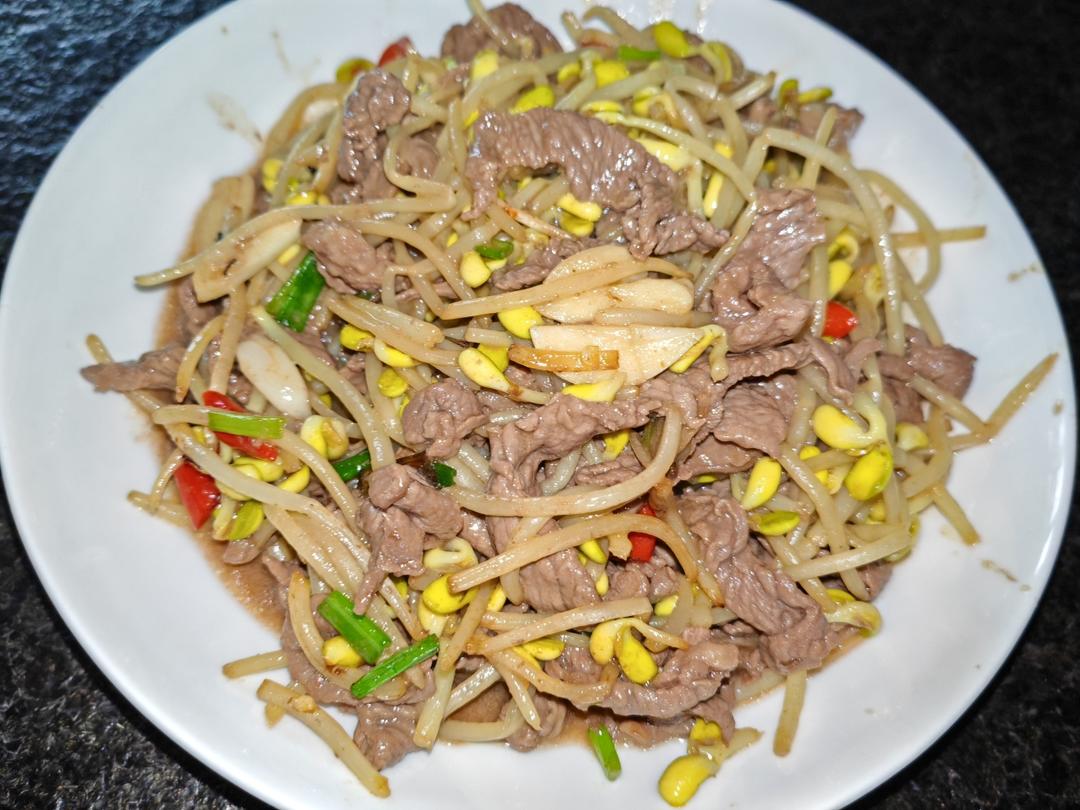 绿豆芽炒牛肉 也是个不错的搭配💕