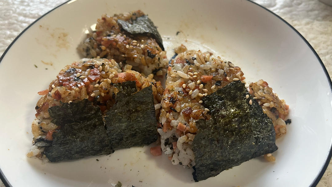 剩米饭这样做好吃好吃到转圈圈,自制日式海苔饭团