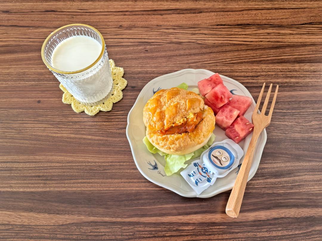 奥尔良菠萝鸡🍔+奶酪棒🧈️+西瓜🍉+纯奶🥛