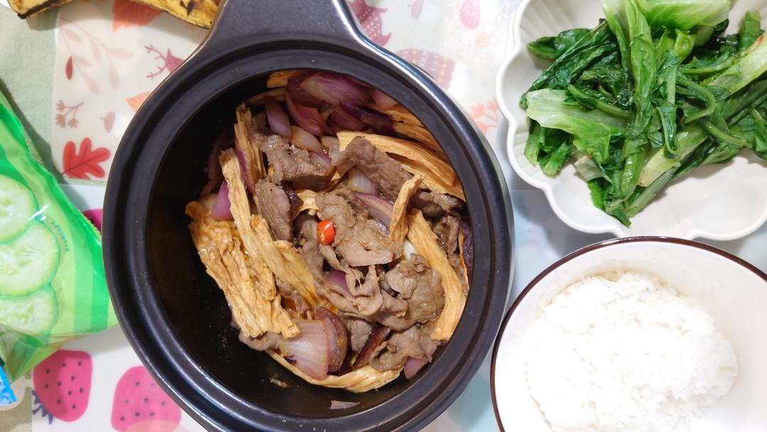 牛肉腐竹煲,油麦菜