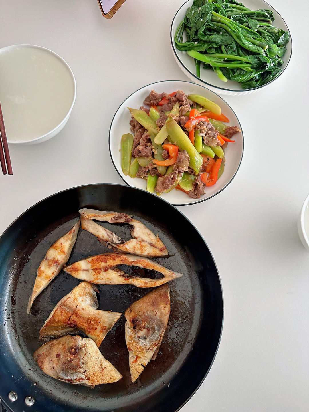 斗鲳鱼,肥炳炒青瓜,芥蓝