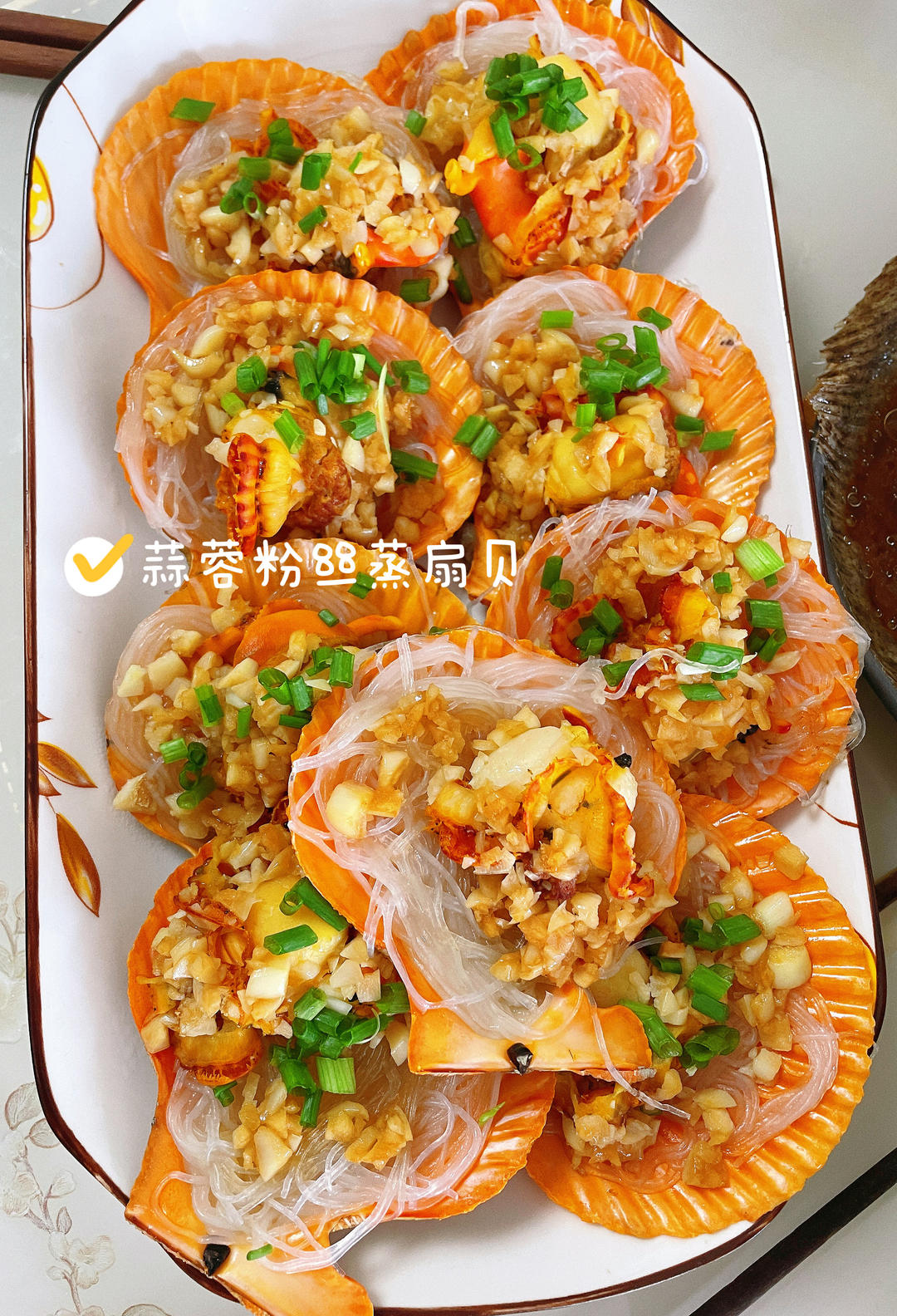 许小豚 做过 蒜蓉粉丝蒸扇贝 #午餐•2024年10月5日# #小豚厨房# 今天的扇贝特别活,第一次买到这么活的扇贝😂挑的时候扇贝吐水,不小心喷到旁边的人了😅大概一头蒜,一勺半(汤勺)蒸鱼豉油,大半勺盐和大半勺鸡精,量正好,味道也正好,不咸了 2024-10-05