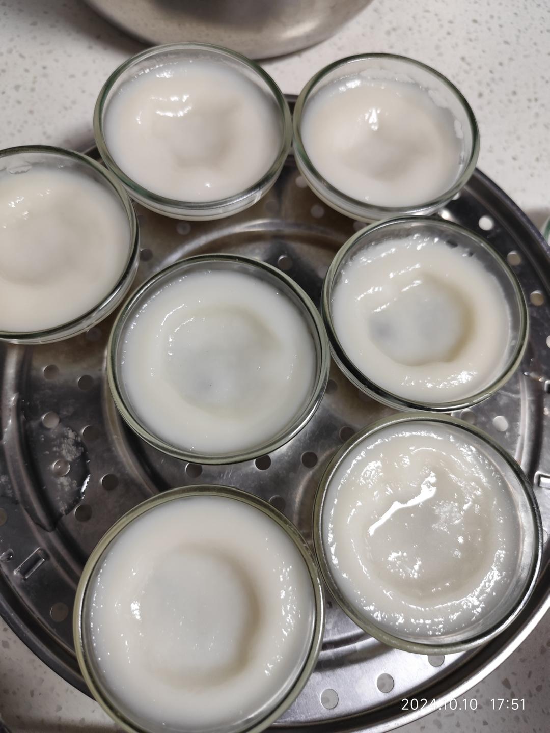 105可粘米粉,5可澄面,20-25克冰糖,150克水搅拌粉,150克水加汤烧开倒入粉浆里,碗蒸热,倒入粉浆大火15分钟,9个小碗。