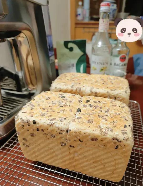 蓦蓦2020 做过 「麦麦吐司」——50%全麦➕藜麦 发酵九分满,提前预热烤箱五分钟。上火185下火215℃40分钟。 王后全麦粗粒粉180克➕山茶花粉320克,无面种 ,鲜酵母16克。 2024-10-18