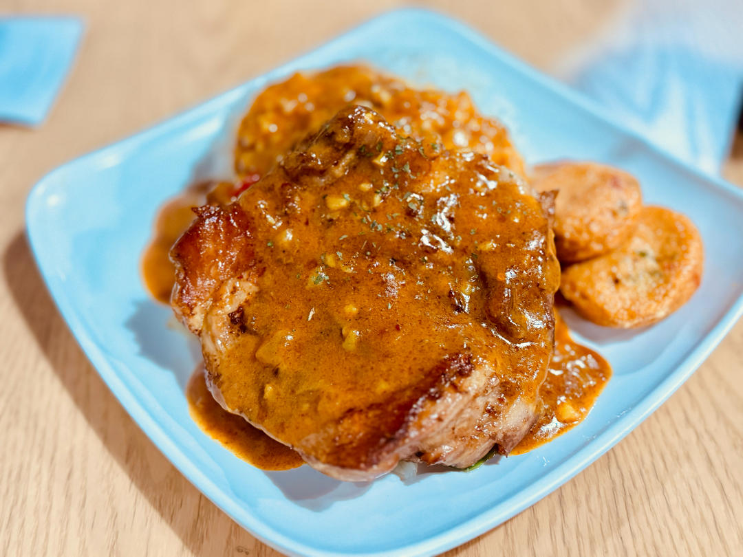 咖喱猪扒配泰式鱼饼,番茄浓汤菠菜面配溏心蛋和猪肉水饺