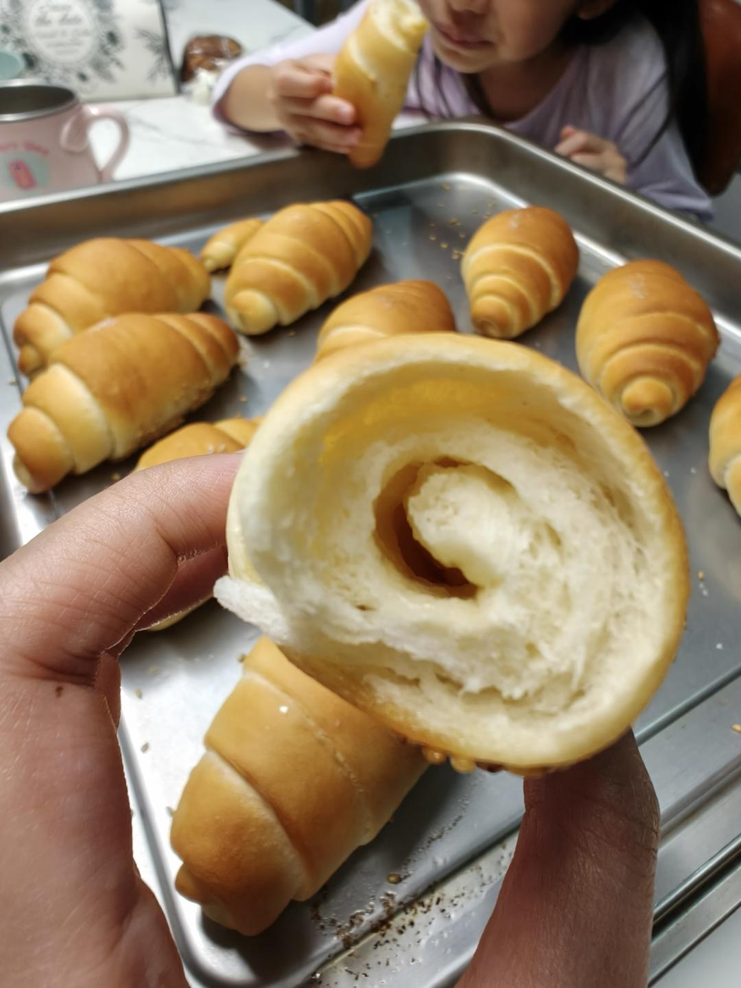 ZoraLiao 做过 日式海盐面包卷 绝了绝了。好吃的面包都很罪恶啊,没想到需要用那么多油。1.今天水用牛奶代替的,1.5倍做了12个,刚好一锅,完美。2.下次面团再多1g盐。3..热风195度12min,颜色已经很到位。4.卷芯没有有盐黄油,就用淡黄油撒了点盐,3g黄油够够的了5.表面的海盐不够大颗,还可以再多撒一点点,咸咸的真的好好吃。6.烤箱的蒸汽不知道啥问题,没起来,害得我放好面包之后又开门喷水,预热好的温度直降40。皮没糊化,不够脆。7.撒盐和粘芝麻之前喷点水,更稳 2024-10-19