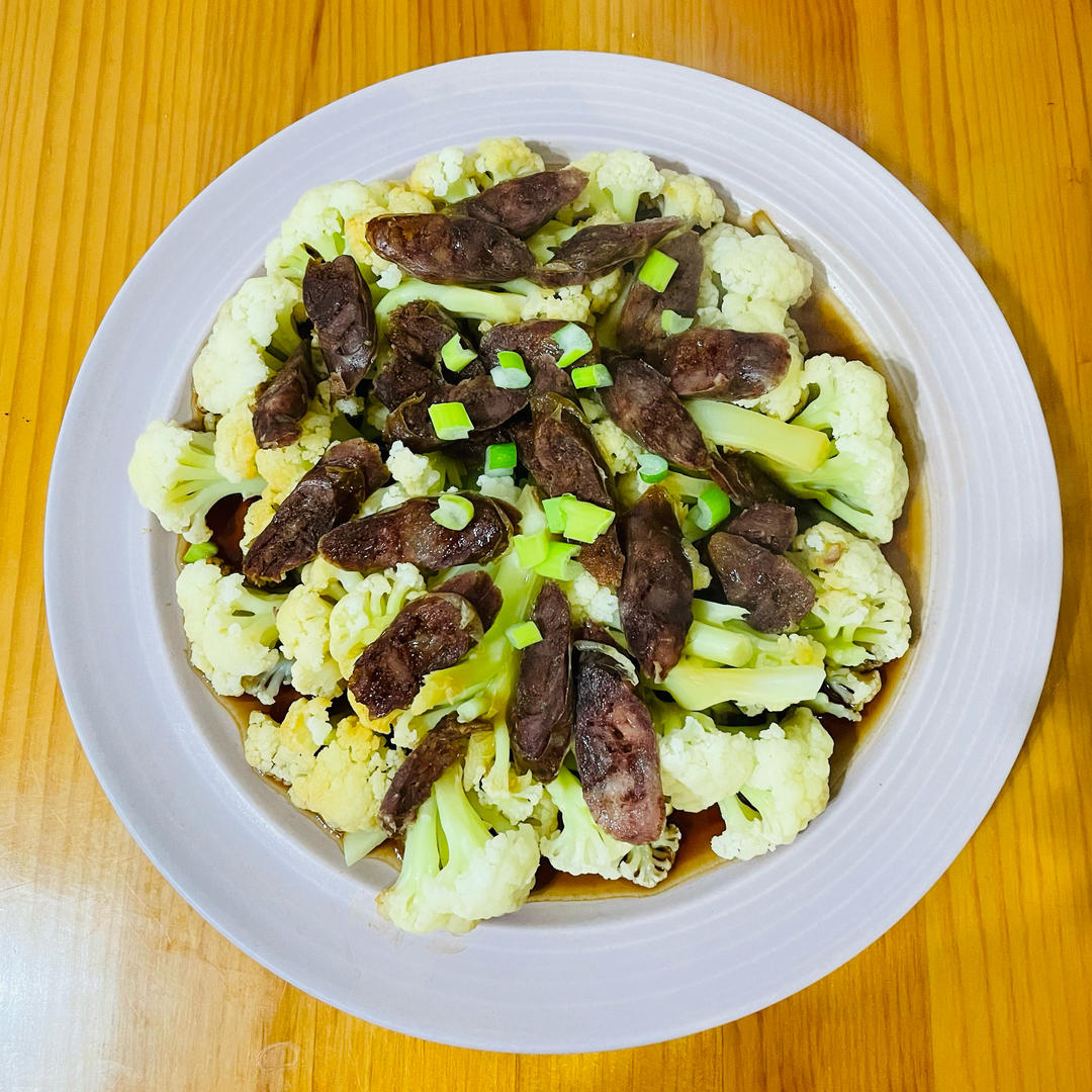 冰凝aiqi 做过 六月鲜|腊肠蒸花菜 🥣腊肠蒸菜花、黑胡椒烤青花鱼、洋葱头炒肉~~腊肠蒸菜花光盘,清淡不油腻,看大家都做也试试,好吃😋,谢谢亲爱的@欣欣妈 的好菜谱,洋葱头好吃难剥皮,差点累出颈椎病😄#晚餐•2024年10月20日# #日常晚餐🥣# 2024-10-20