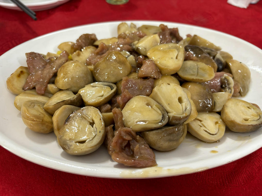 裕民八队牛肉炒鲜菇,炆脆肉鲩鱼(骨、腩)