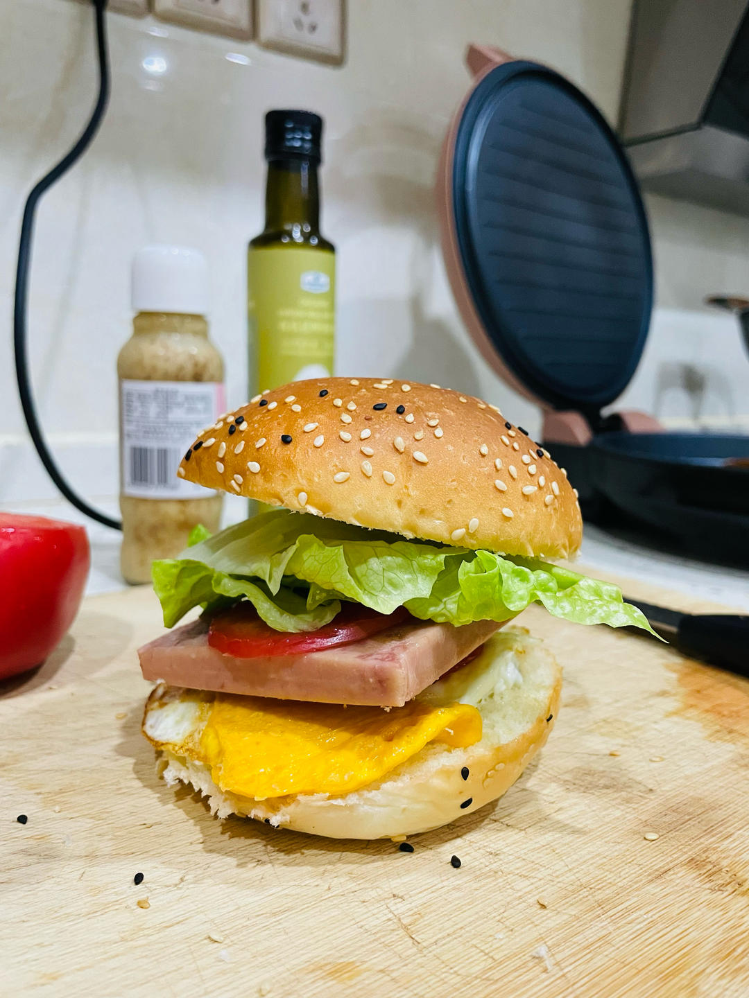 和宝贝一起做的大汉堡,高粱粉到了,又整了一锅馒头。