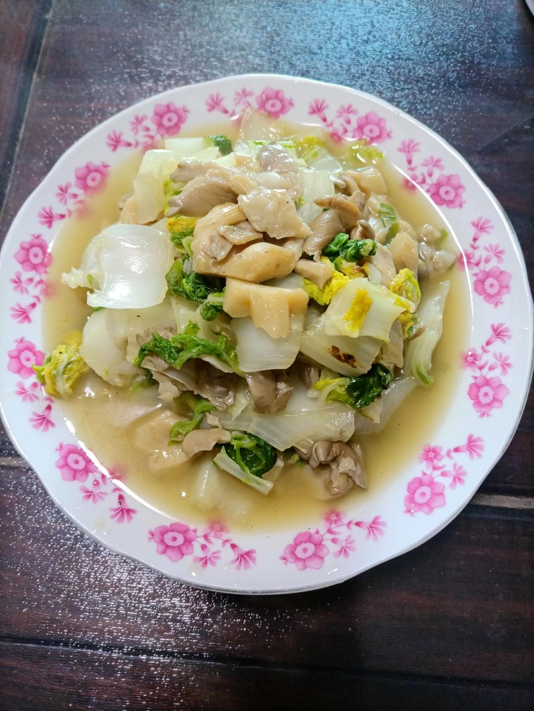 黄心乌菜炒平菇。