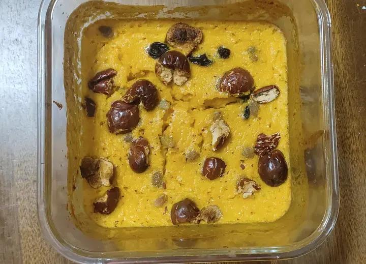 susan_sue 做过 🎃南瓜牛奶布丁蛋糕🎃 #早餐•2024年11月9日# 这个菜谱特别好,一是快,不需要打发蛋白直接所有料搅拌即可,二是食材比例可以自己调整,不必很精确都很好吃,三是味道还真不错,有芝士的细腻感,南瓜的香气,我加了葡萄干和红枣,在表面点缀,味道更有层次 2024-11-09