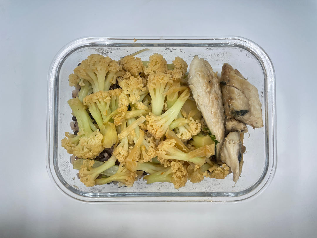 清炒花菜+煎鲭鱼