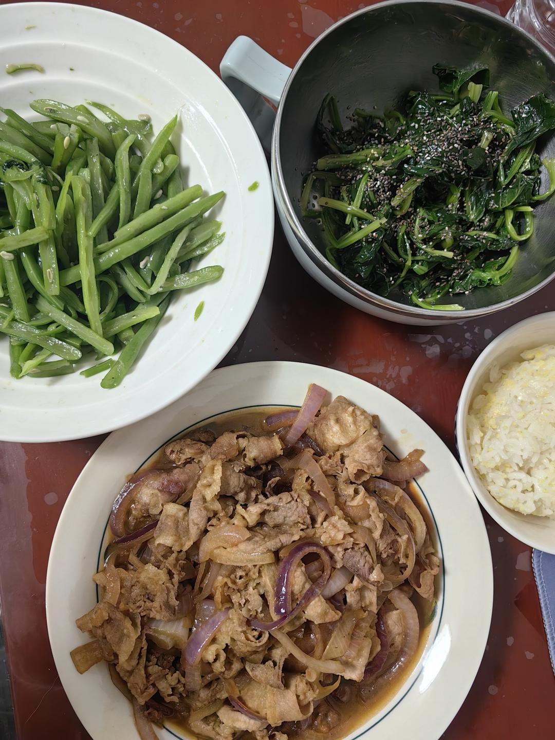 瘦瘦不瘦欸 做过 晚餐•2024年11月27日 #晚餐•2024年11月27日# 不想尼了,自己搞饭了,洋葱肥牛饭,黄油🧈煎过的洋葱🧅真香啊哈哈哈哈哈,蔬菜是pepe煮的四季豆和菠菜 2024-11-27