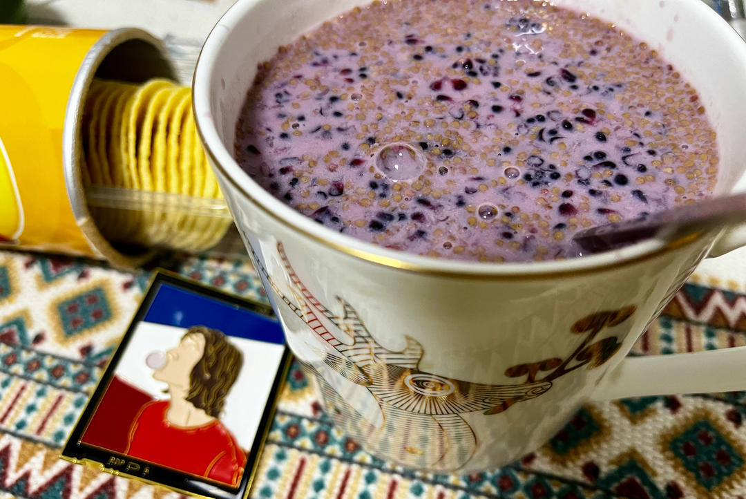 桑葚豆浆,薯片
