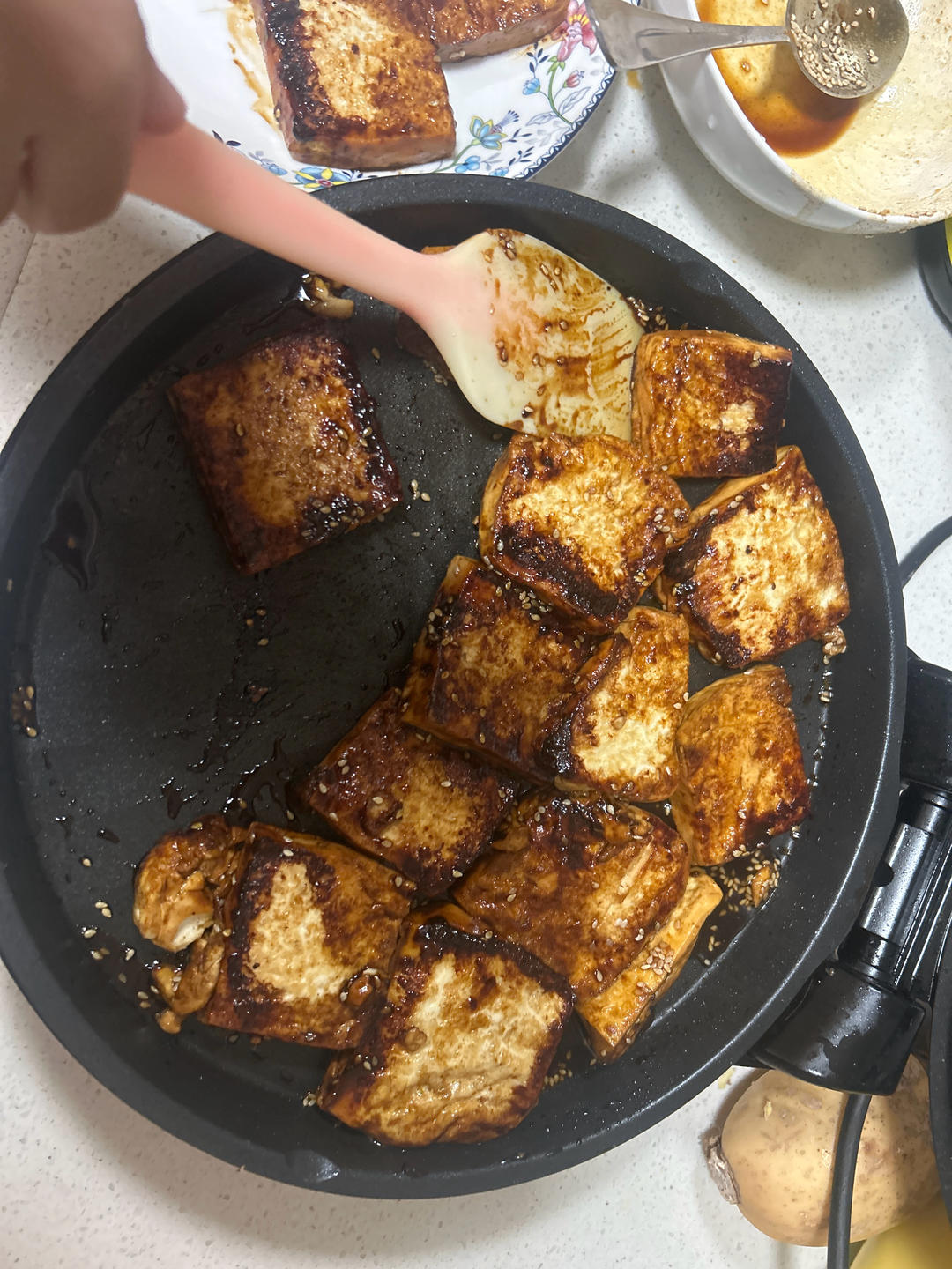 铁板烧烤风味的香辣煎豆腐