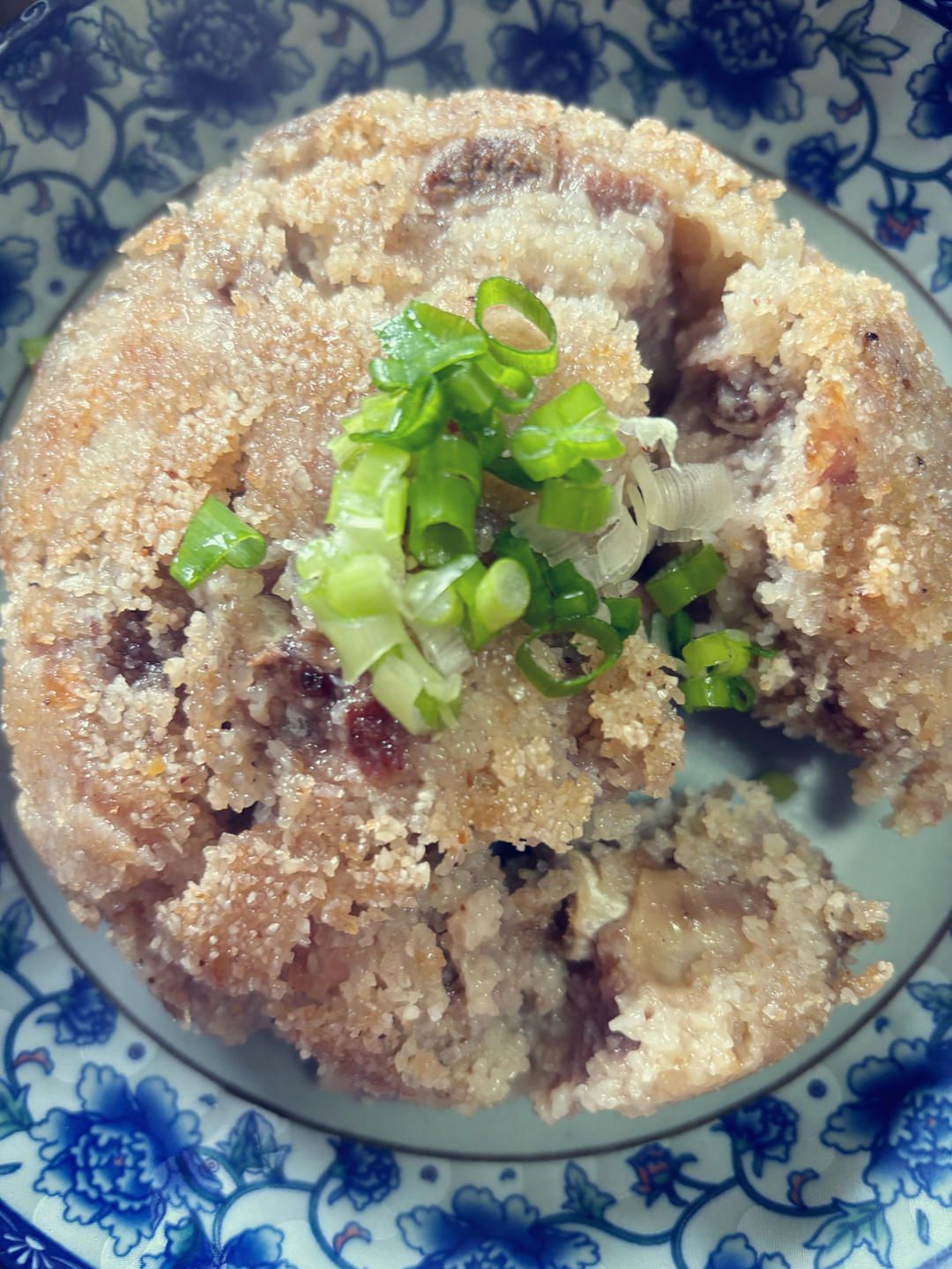 粉蒸排骨高压半小时,之前只是把肉排剁细后水浸,裹某米粉蒸,后来又加豆瓣酱、老干妈和红糖水及醪糟,味道立码丰富,入口圆润。