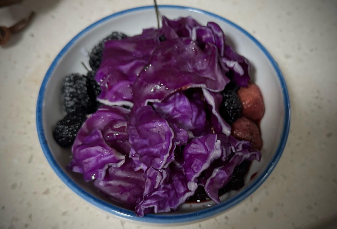 今日饮品:紫甘蓝,黑枸杞,桑葚,草莓,树莓,蓝莓(满满的花青素)小伙伴寄来的冰糖心冰淇淋萝卜拿来拌沙拉也太好吃了,就这样直接啃也很好吃,非常感谢。