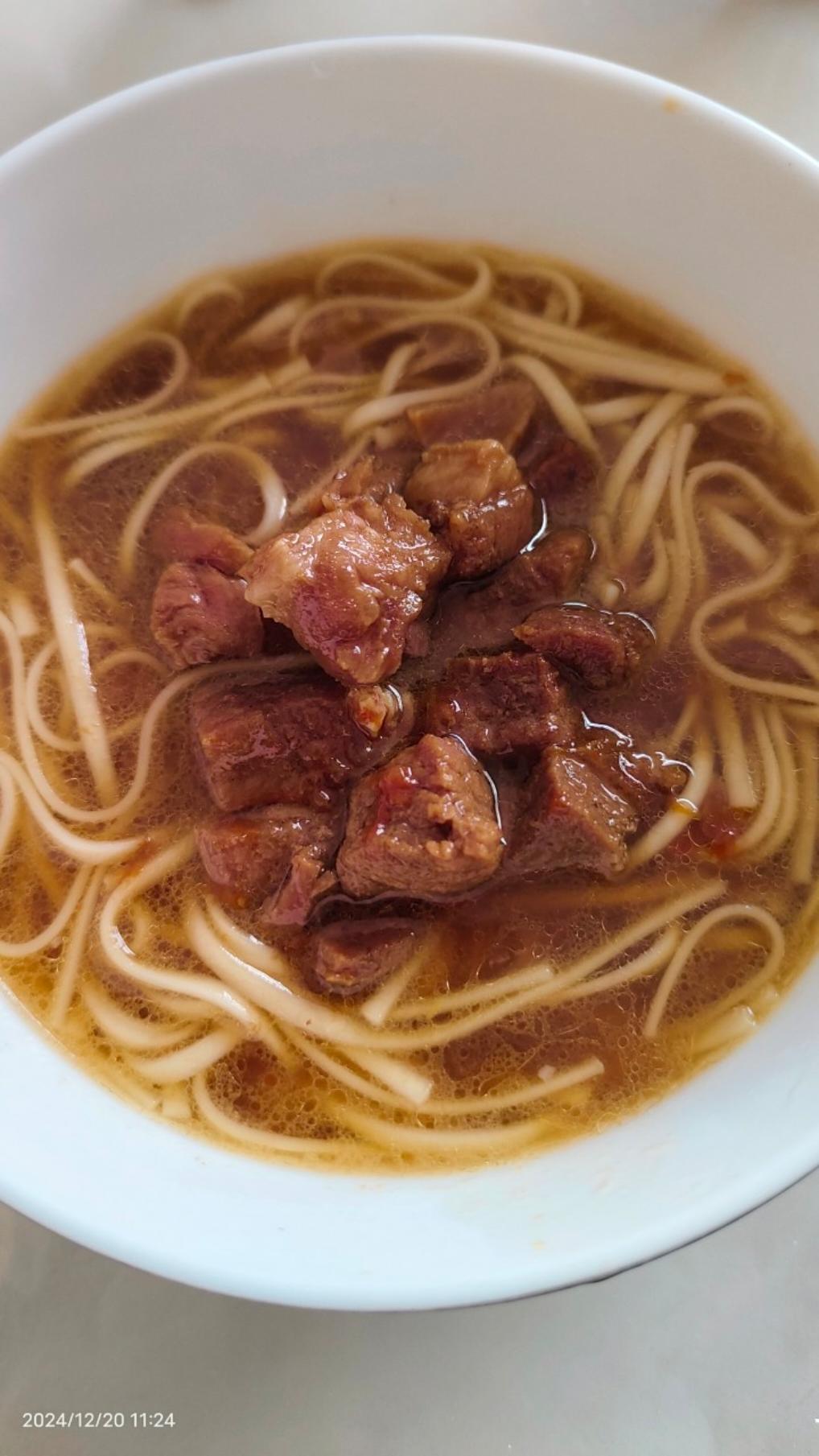 如意Q888 做过 2024年12月20日 红烧牛肉面牛肉冷水下锅,撇去浮沫捞出锅里放油,加两块冰糖炒出糖色下牛肉、葱姜煸炒,➕生抽/老抽炒一会,再加开水,最后放入电饭煲煮饭键一个小时,中间➕盐非常好吃😋 2024-12-20