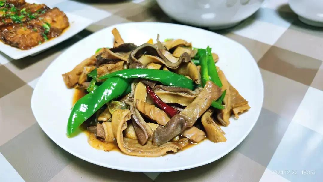 儿子小两口来看我们了,周末小聚😄晚餐 : 红烧带鱼、尖辣椒炒猪肚、红烧鸡腿、蒜香蒿子秆、素炒南瓜、冬瓜汆丸子