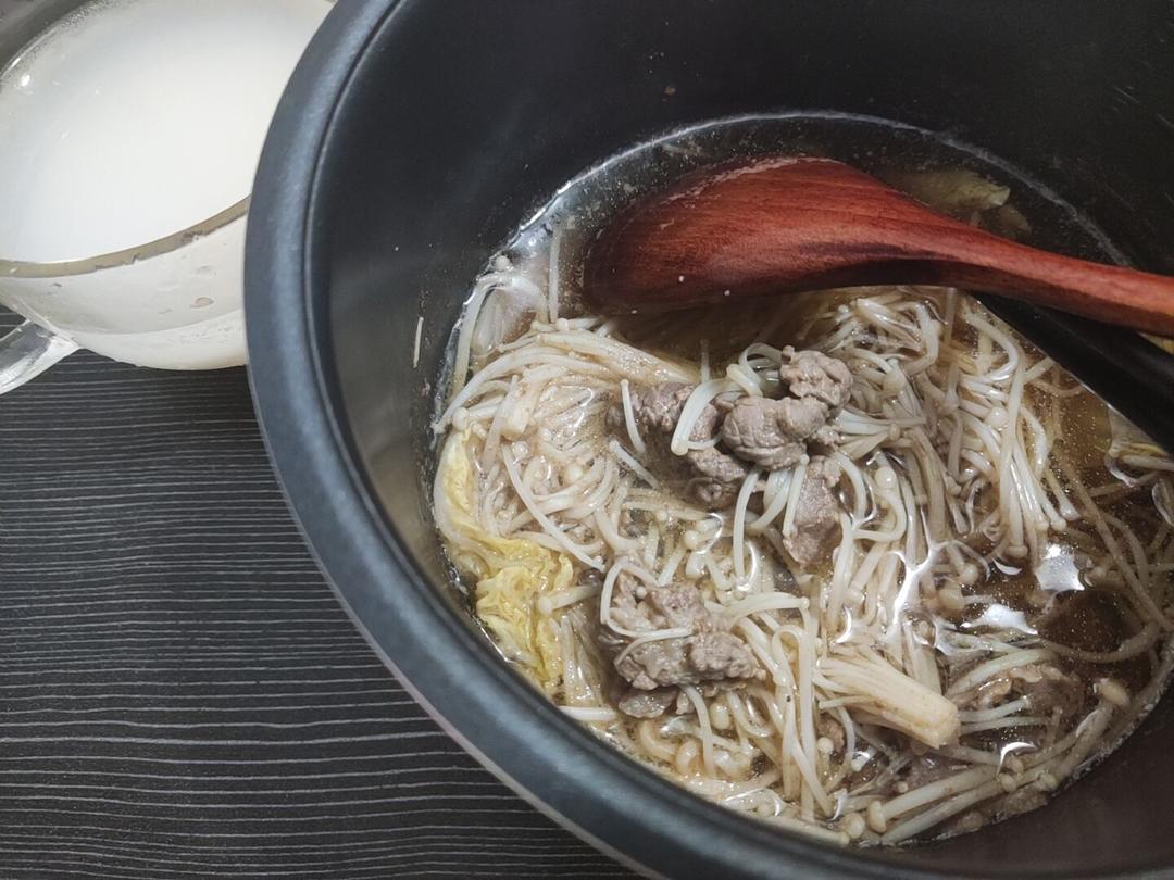 酒酿气泡水,配白菜金针菇水煮牛肉!!减肥冲冲冲