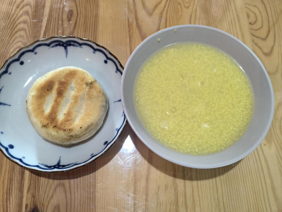 茴香鸡蛋饼,小米粥