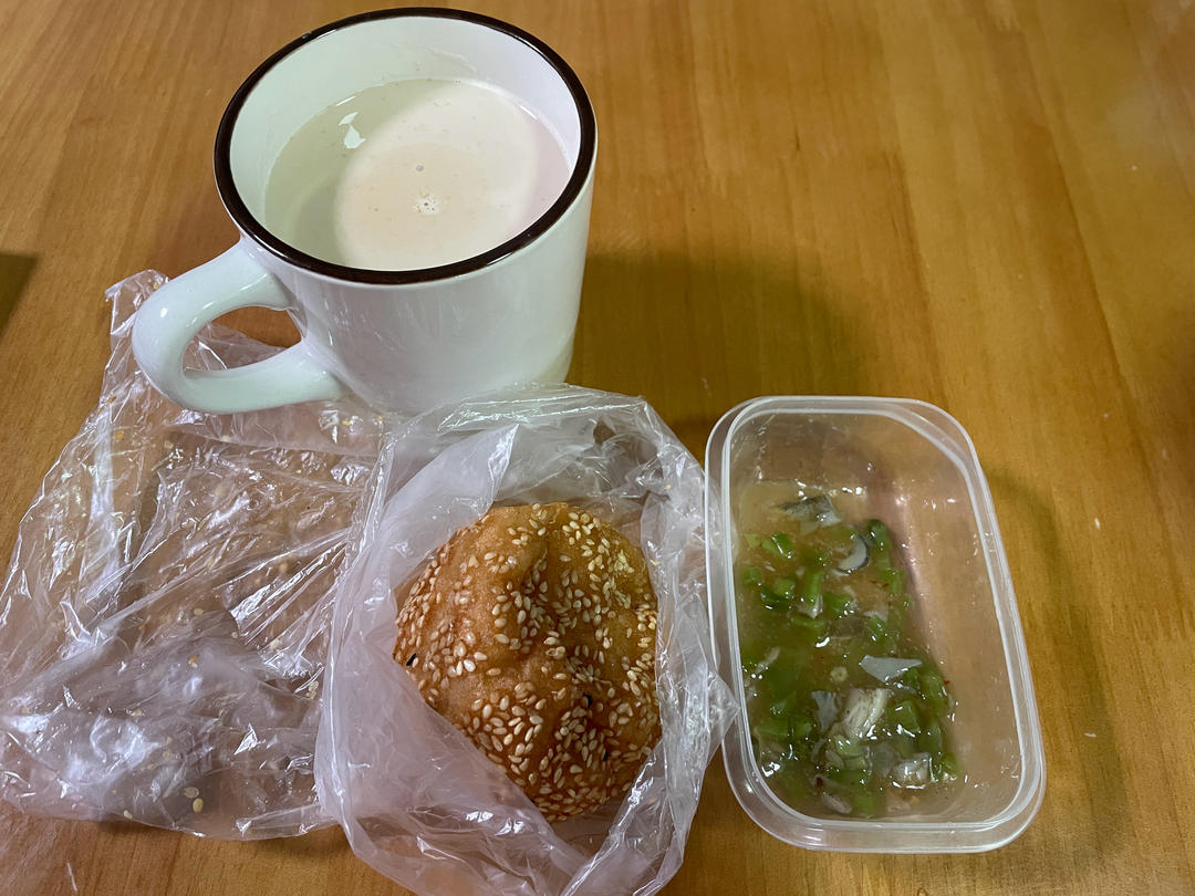 阿兔太路易妈 做过 1月早餐马拉松 #早餐•2025年1月3日# 咖啡,麻球,芥末章鱼。吃完感觉不够,又加了个煎蛋😂给小人早餐准备了吐司披萨,涂上蛋黄酱番茄酱,加了肉松炒蛋玉米粒,再盖芝士片,烤一会。可惜,小人起床晚了,7.30勉强来得及出门,早餐只能外带了……青春期,学习把他当室友。 01-03