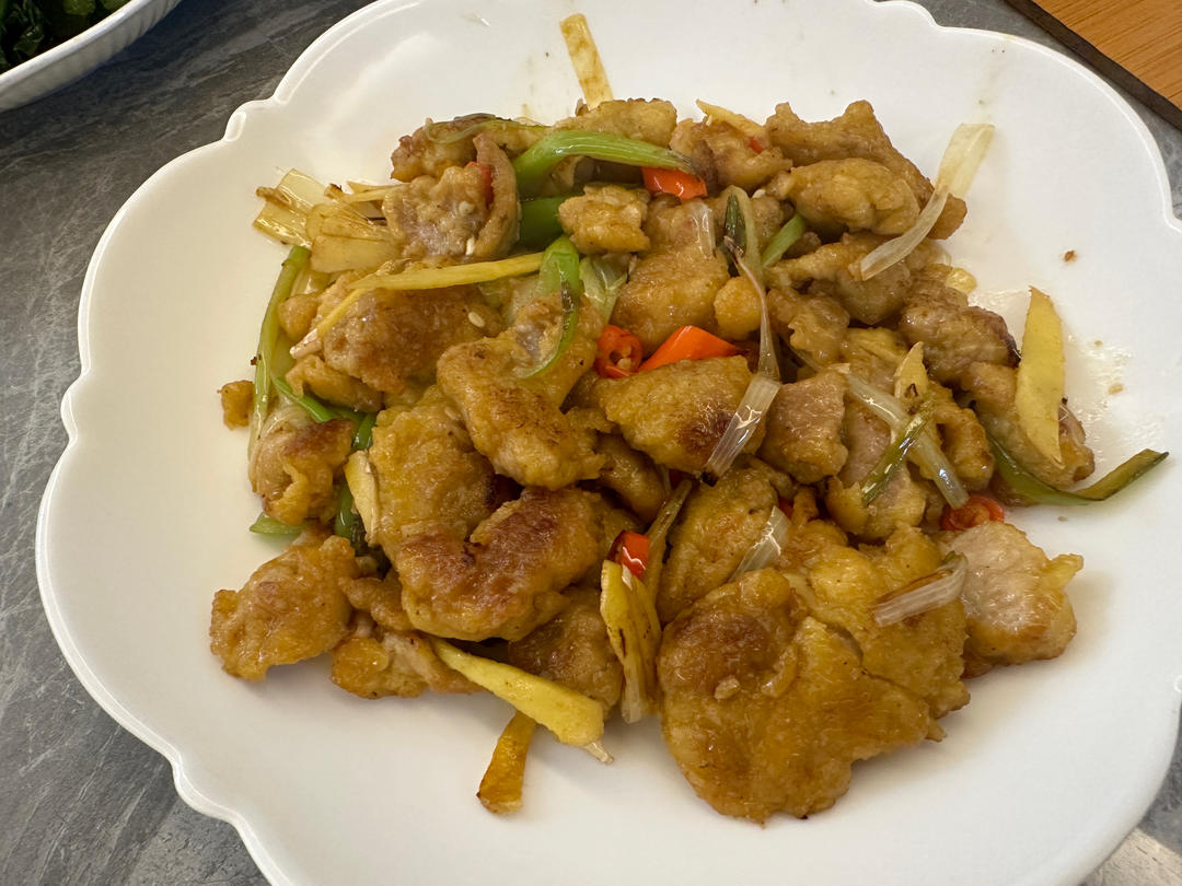 酸辣炸酥肉,腊肉炒芥兰,萝卜焖鸭
