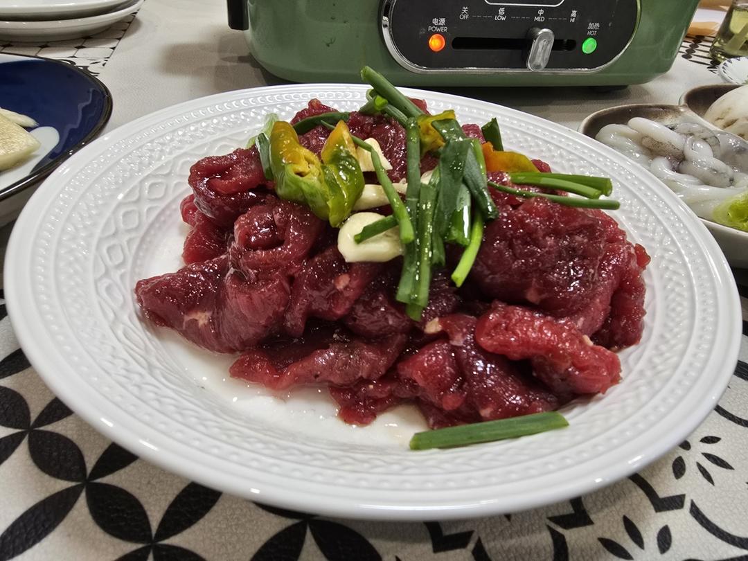 牛里脊,目鱼须,口蘑,香菇,配一碗油咸排骨汤,里面放了豆腐粉丝小菜,简简单单