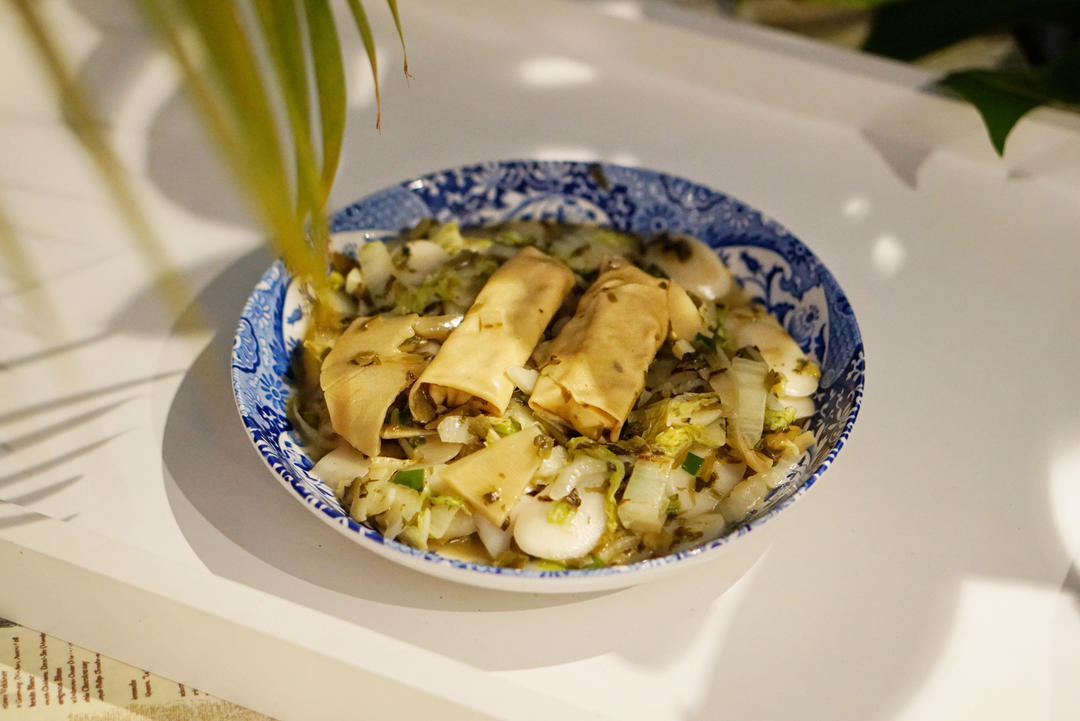 比鸡汁百叶包更好吃的雪菜笋片百叶包(千张包)