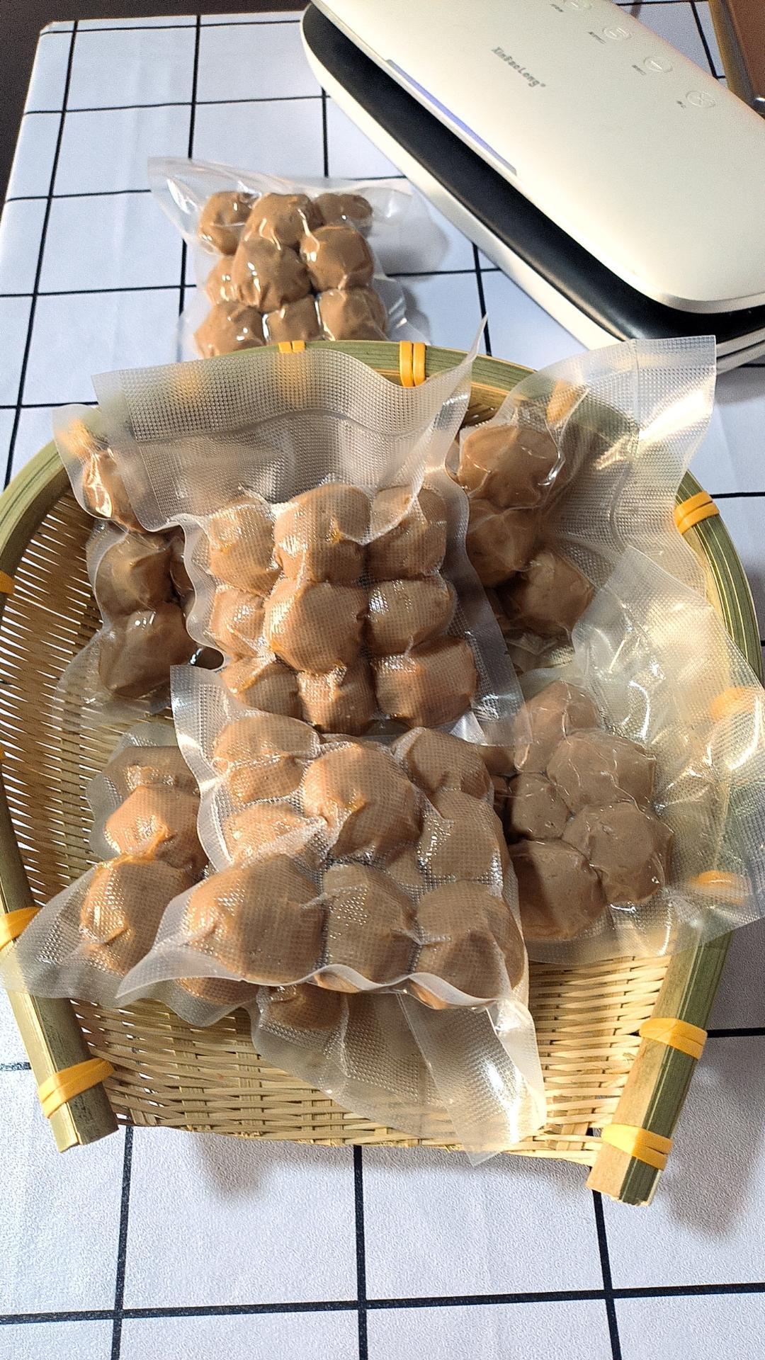 胖妞_ut9v 做过 2025年01月14日 Q弹牛肉丸,牛后腿肉1258g,冰水加了400g,盐13g及其它调味料,木薯淀粉125g,无铝泡打粉20g,玉米油40g。有朋友说口感稍硬这次特意多加了点冰水试试,根据自己之前的方子是378g。成品出来很不错水量可以哈。 01-14