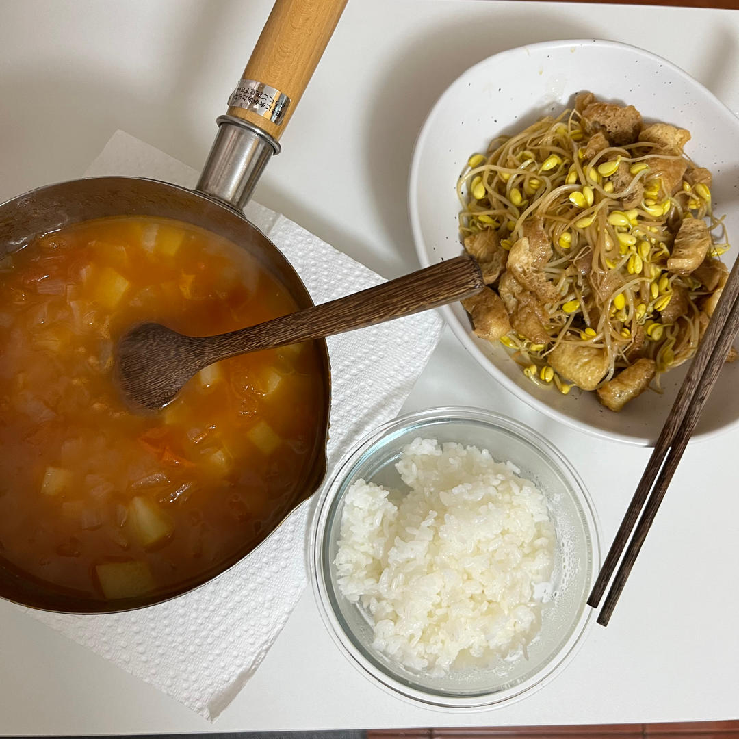 罗宋汤 黄豆芽炒油豆腐
