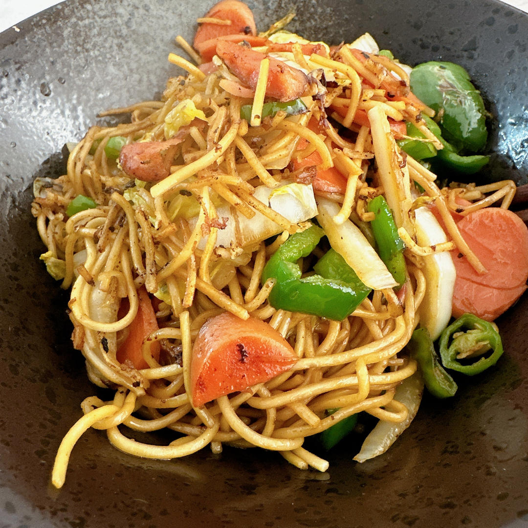 猛火炒凉面,当然,炒完变成热面了哈哈哈