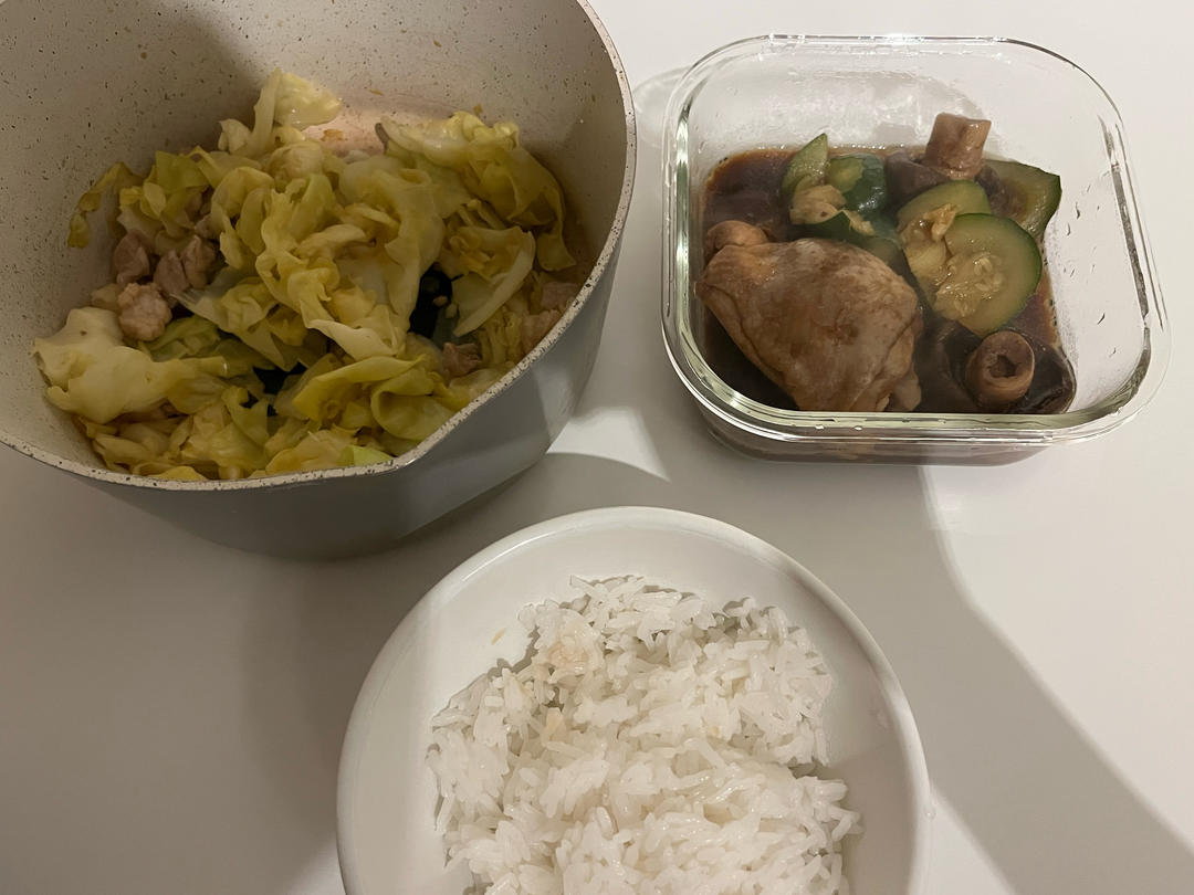 甜包菜炒肉 西葫芦蘑菇炖鸡腿肉