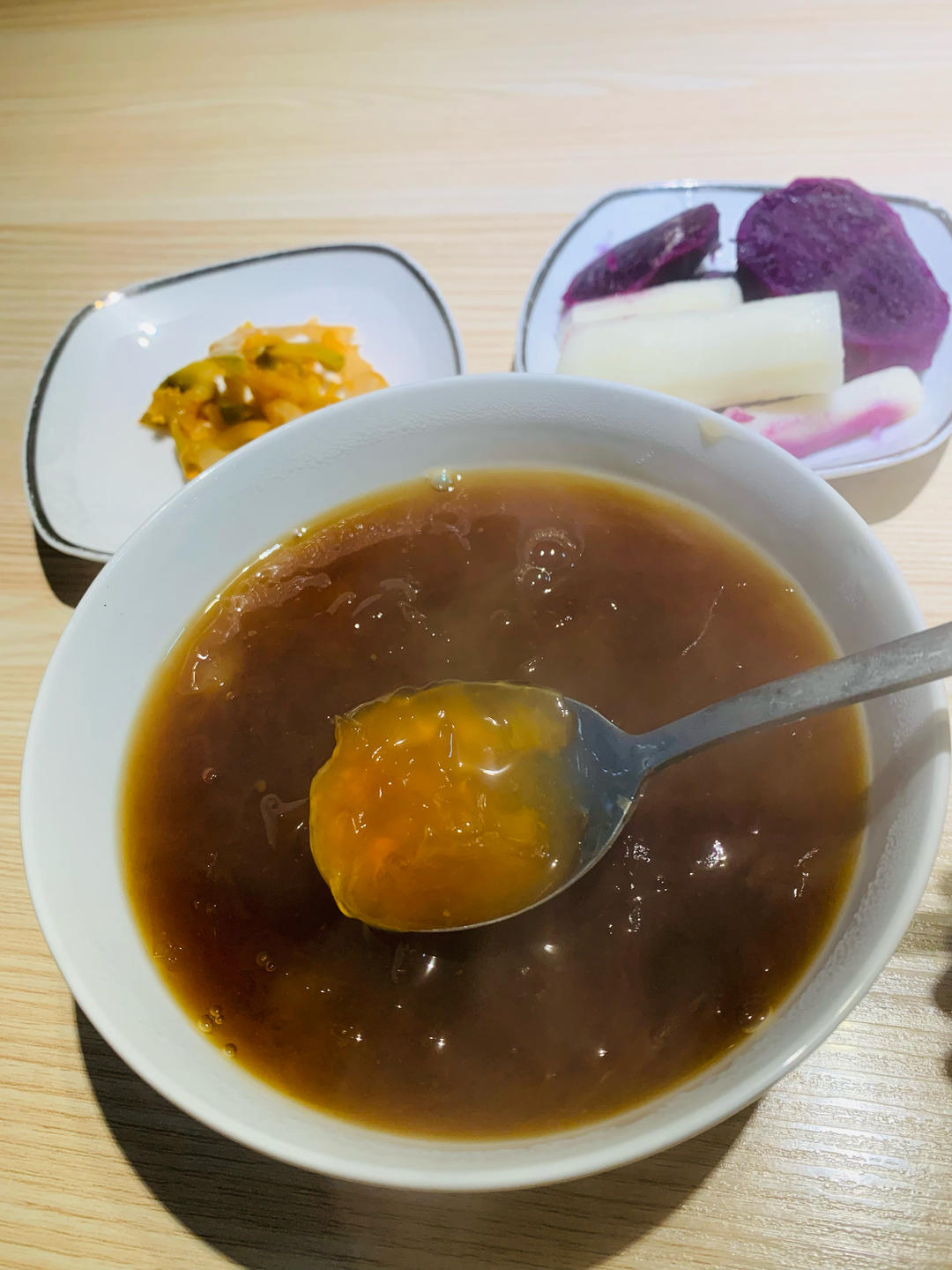 早餐银耳羮+蒸紫薯和山药