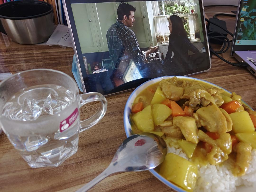 边看暮光之城边吃咖喱鸡米饭