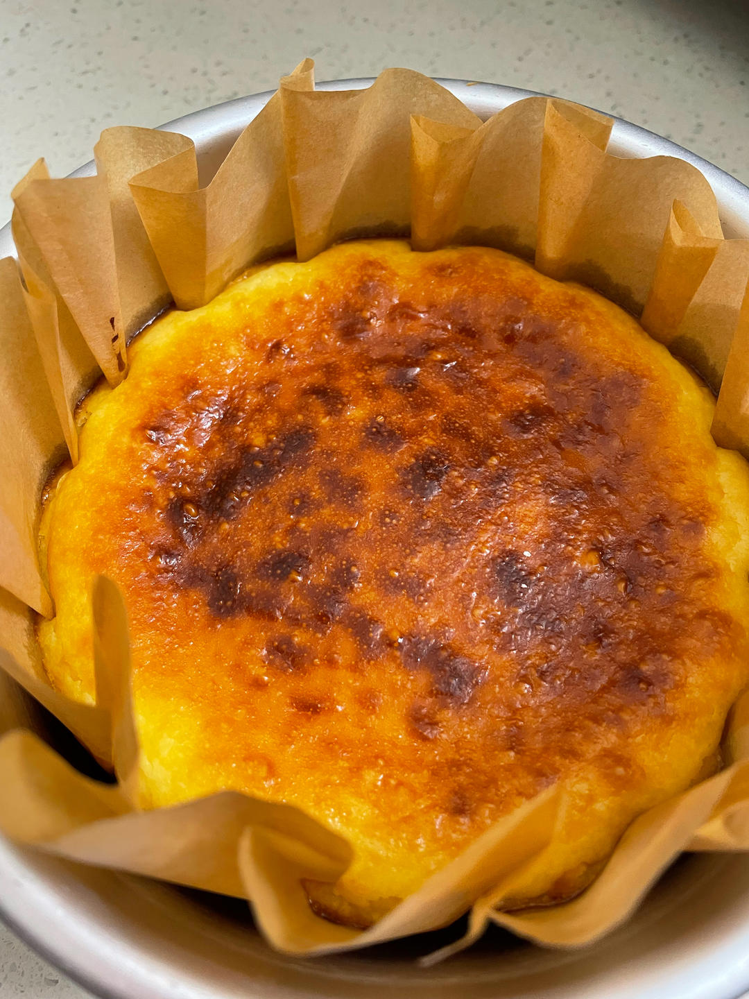 Anna13-cherry 做过 巴斯克芝士蛋糕『最简单的蛋糕』零失败🔥芝士控 #晚餐•2025年2月28日#奶油奶酪(kiri法国)260g绵白糖60g鸡蛋2个蛋黄1个淡奶油(铁塔)120g牛奶30g低粉10g醋二滴6寸模具 上火下火200度 26分 中层没有把油纸打湿。忘记芝士湖过筛了。直接倒模具烤好,等冷却直接吃~口感细腻润滑~真的好吃~巴斯克蛋糕里面半熟的~ 超级开心😃懒得没放冰箱冷藏隔夜哦~蛋糕纸膜做法详细好 02-28