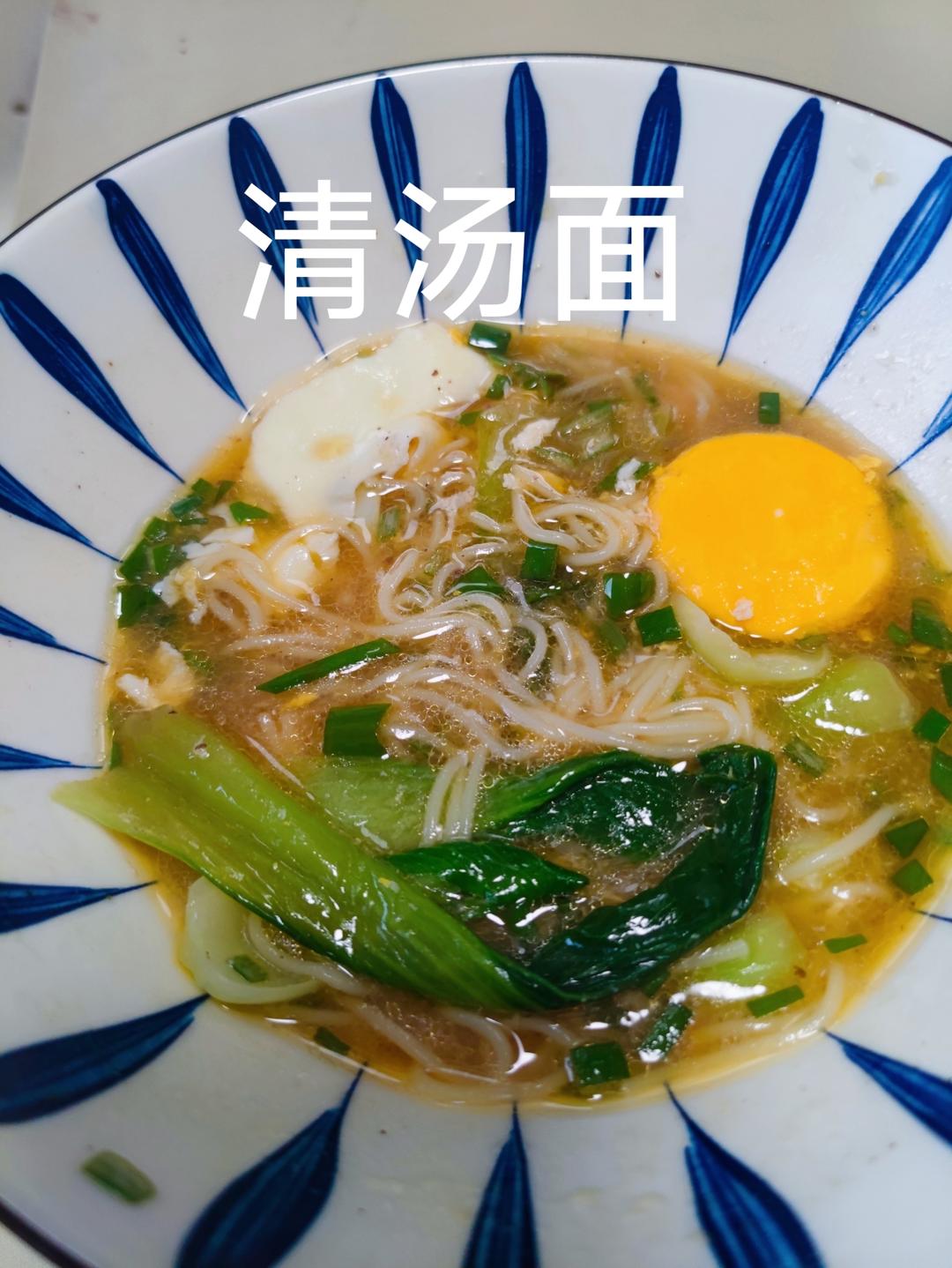 为美好努力 做过 2025年03月02日 简易版清汤面1,锅中加冷水下入挂面,水快时打入荷包蛋。2,水开后下入油菜。3,调料汁:碗里放葱花、生抽一勺,陈醋半勺,盐,猪油、香油少许。4,用汤汁先浇入料汁中,再倒入煮好的面菜,即食。 03-02