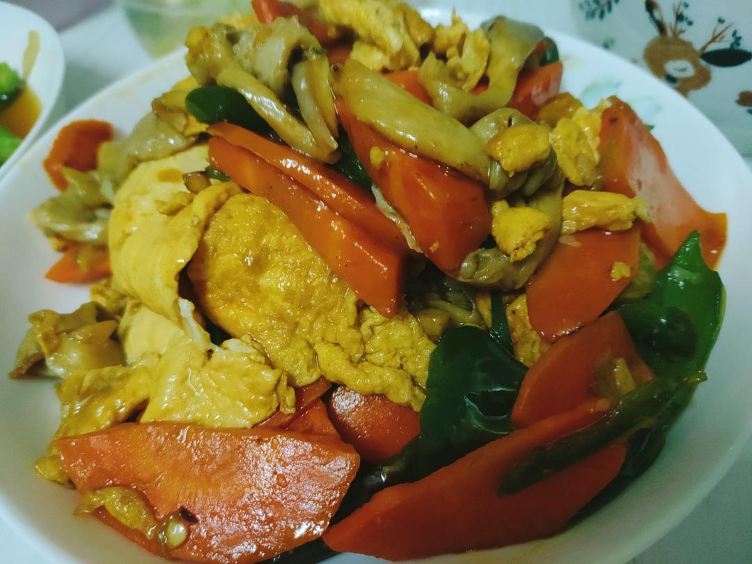 胡萝卜青椒、平菇炒鸡蛋