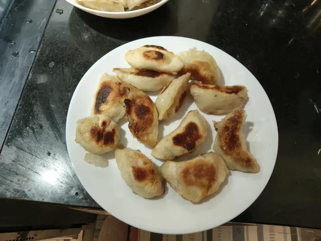 一部分煮了,一部分做成了冰花锅贴。很香。我和馅的时候还放了点香油。