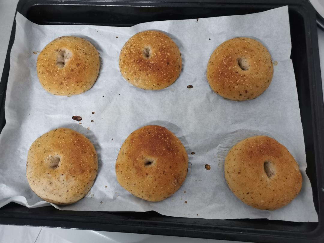 fs咩咩 做过 酒酿玫瑰贝果🌹 1.5倍。90g左右。我是发酵的时候放进冰箱了第二天的时候再烤,可能是因为酒糟水多点,整个面团会比较湿。我的贝果老是入炉,以后就不长高了所以烤出来很扁平。但是有淡淡的玫瑰花香还是好吃。 03-15