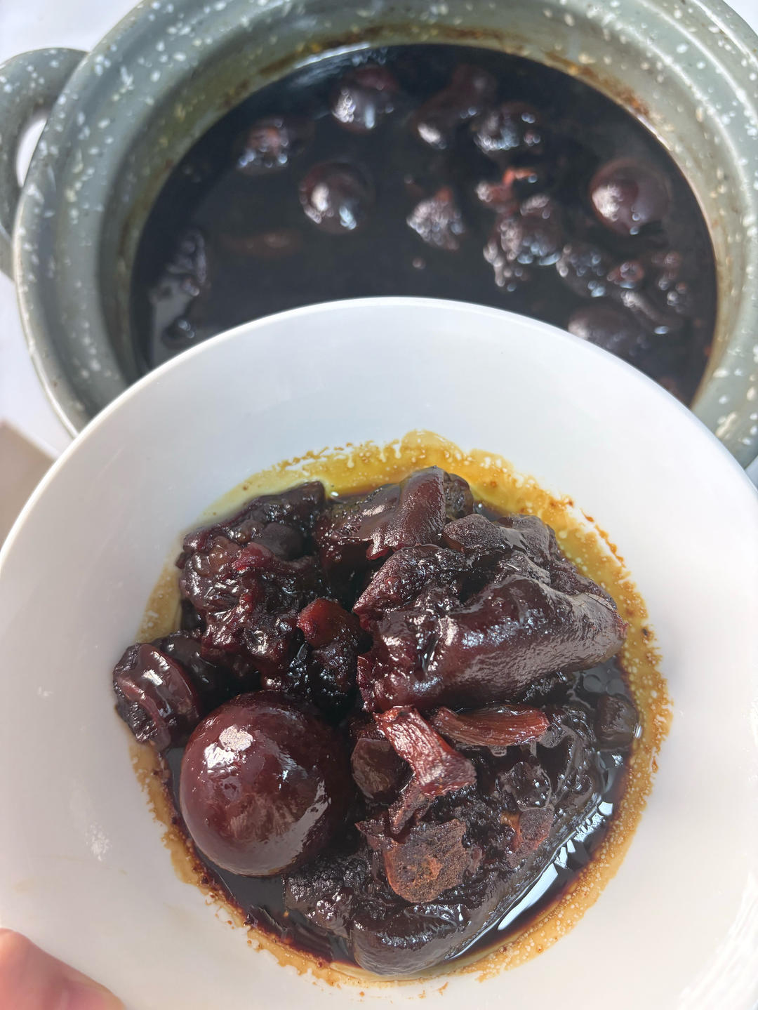 熬了四天,猪脚有点硬硬的,感觉第二天的时候就挺好吃,下次试一试一下子熬到软烂直接吃