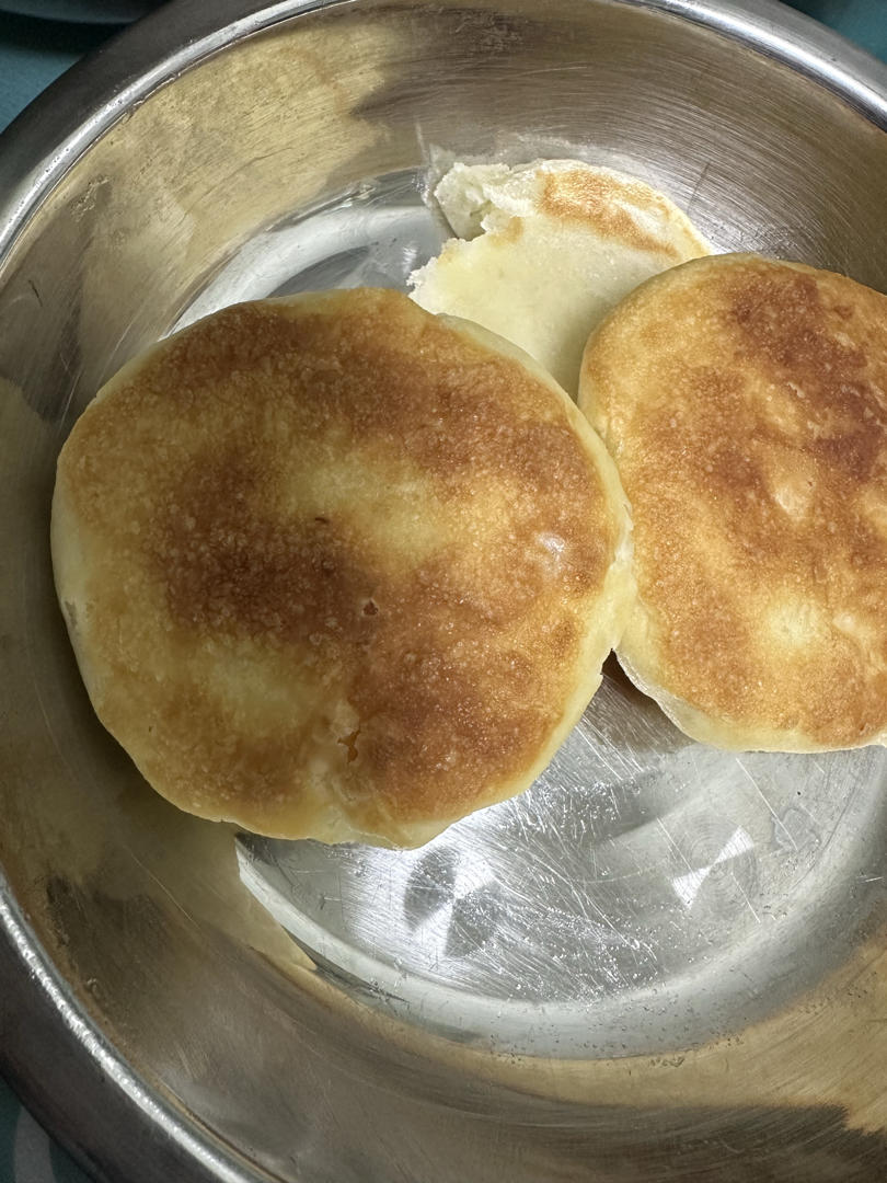Jia_f2j5 做过 油盐千层烧饼 昨天烤的烧饼皮杠杠硬,今天500克面粉4克鲜酵母330毫升温水,揉一揉醒20分钟再揉光滑,醒半小时后不揉直接擀开包油酥,切份包好擀好,抹油烤箱发酵10几分钟时间短了,小火烙一两分钟又230度烤6分钟左右,皮就很脆硬了。还烙了两个没烤的,烤的有烧饼味道,两者都不够软,下次多加点水。#晚餐•2025年3月21日# 2025-03-21