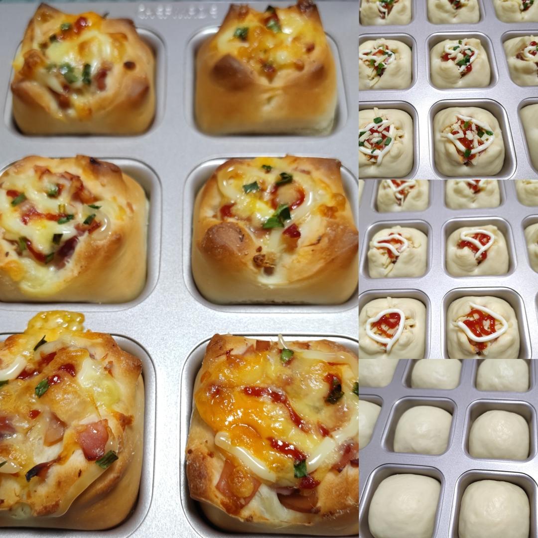 低糖低油火腿肠芝士香葱咸味小餐包,十二连模柔软披萨小面包