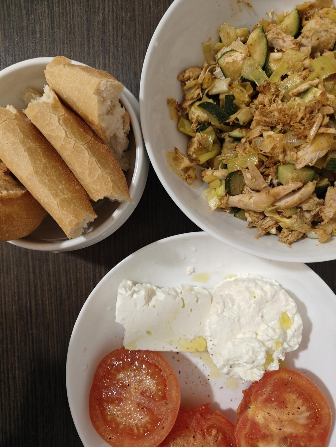 希腊奶酪水煮西红柿+孜然角瓜大葱鸡肉