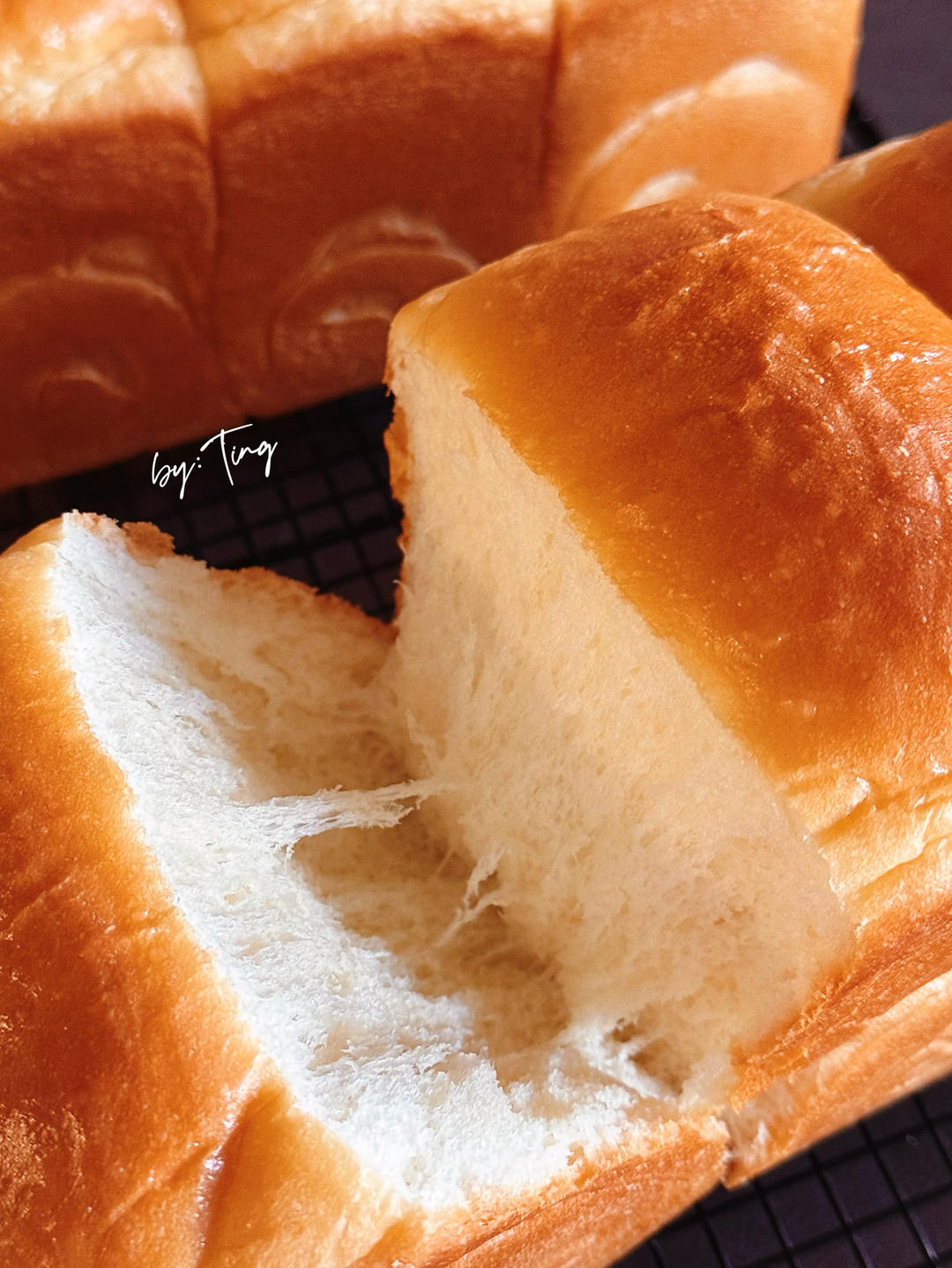 走走Tingting 做过 100%冷藏中种北海道吐司2.0版 主面团糖30g,牛奶没加,9分满用了一个半小时……刷了层牛奶,中下层180度33分钟,10分钟后加盖锡纸,没长高多少,至少没回缩……很软,微甜~ 03-30