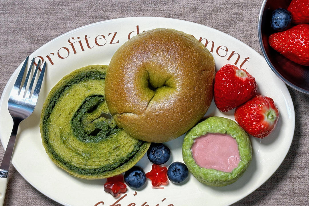 抹茶奶酥贝果+树莓黑巧冰乳酪司康(•̀ᴗ•́)و̑̑