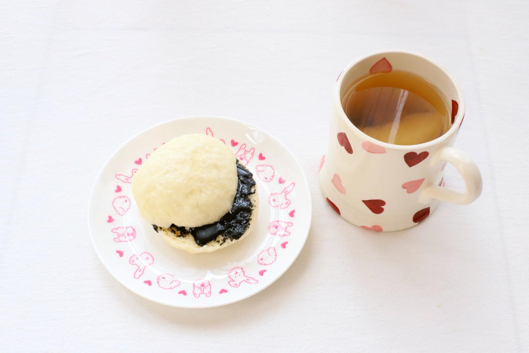 D1572 早餐:豆浆馒头夹黑芝麻酱+苹果黄芪水