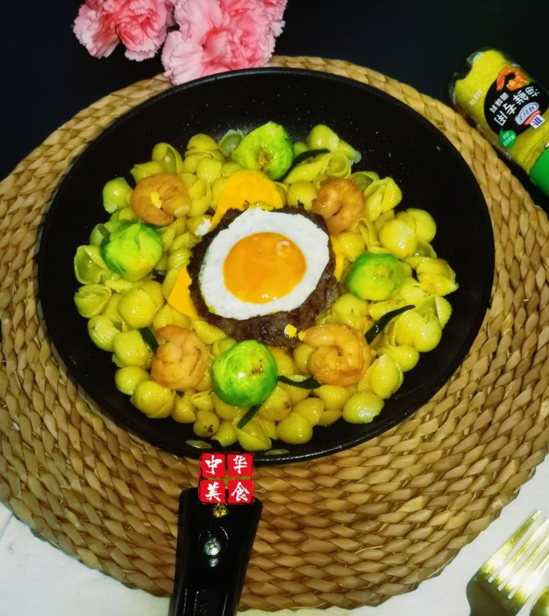 牛肉饼🦐溏心蛋包子甘蓝芝士意面🍲